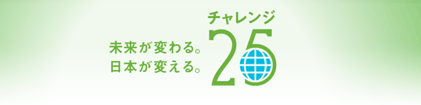 政府では、地球と日本の環境を守り未来の子どもたちに引き継いでいくため、「チャレンジ25」と名付け、あらゆる政策を総動員して地球温暖化防止の対策を推進することとしており、そのための温暖化防止のための国民的運動を、「チャレンジ25キャンペーン」として2010年1月14日より、新たに展開することとしました。
